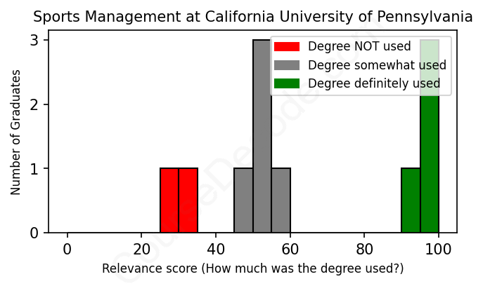 First, some facts. Of the Sports Management graduates from California University of Pennsylvania we've analyzed , here's how many have used (or NOT used) their degree in their career:
