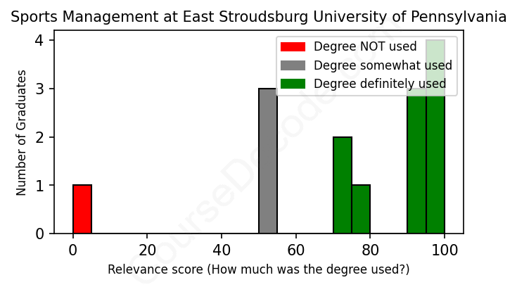 First, some facts. Of the Sports Management graduates from East Stroudsburg University of Pennsylvania we've analyzed , here's how many have used (or NOT used) their degree in their career: