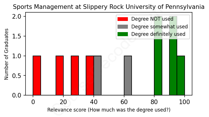 First, some facts. Of the Sports Management graduates from Slippery Rock University of Pennsylvania we've analyzed , here's how many have used (or NOT used) their degree in their career: