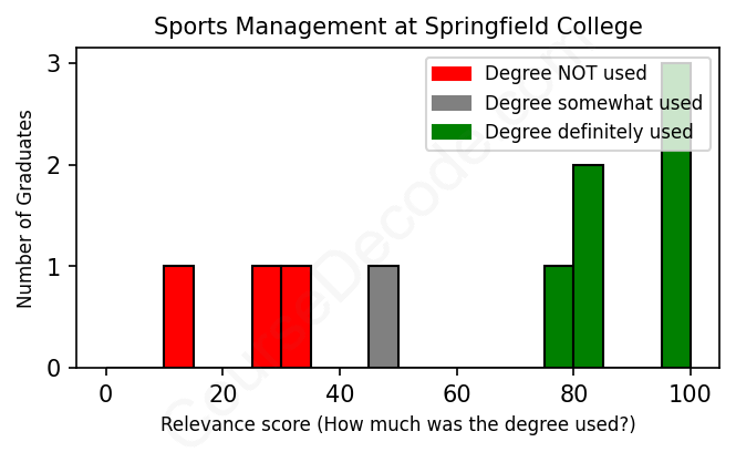 First, some facts. Of the Sports Management graduates from Springfield College we've analyzed , here's how many have used (or NOT used) their degree in their career:
