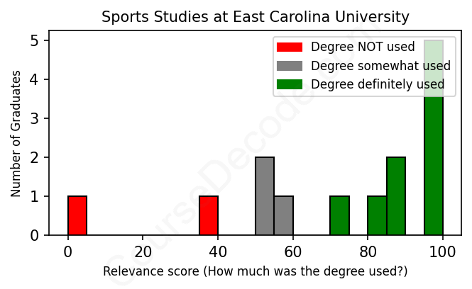 First, some facts. Of the Sports Studies graduates from East Carolina University we've analyzed , here's how many have used (or NOT used) their degree in their career: