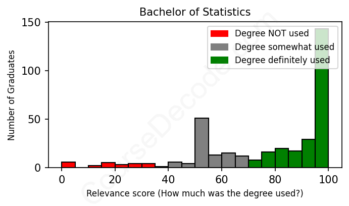 The verdict? Above average. Overall, with an average relevance score of 77%, Statistics graduates have a higher likelihood (+10%) of finding work in this field compared to the average graduate across all fields: