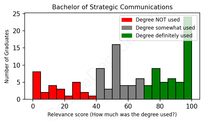 First, some facts. Of the Strategic Communications graduates we've analyzed , here's how many have used (or NOT used) their degree in their career: