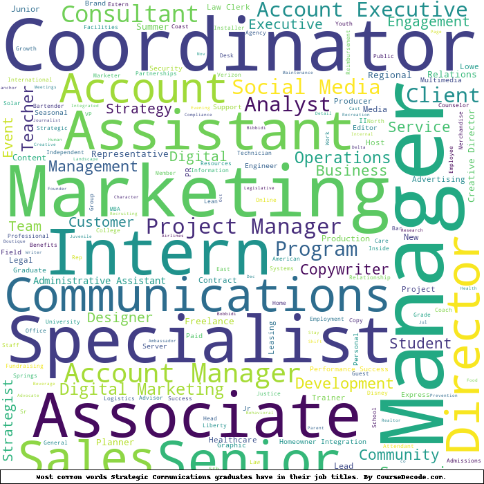 Here is a visual representation of the most common words in job titles for Strategic Communications graduates: