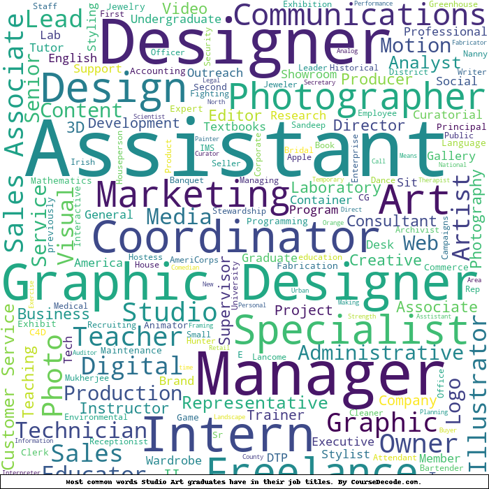 Here is a visual representation of the most common words in job titles for Studio Art graduates: