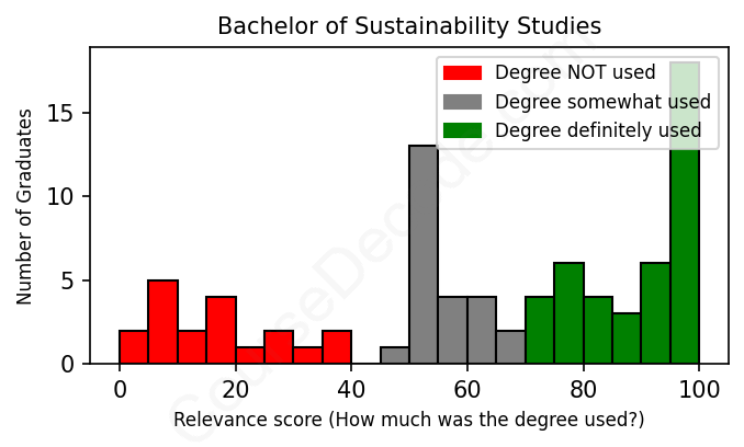 First, some facts. Of the Sustainability Studies graduates we've analyzed , here's how many have used (or NOT used) their degree in their career: