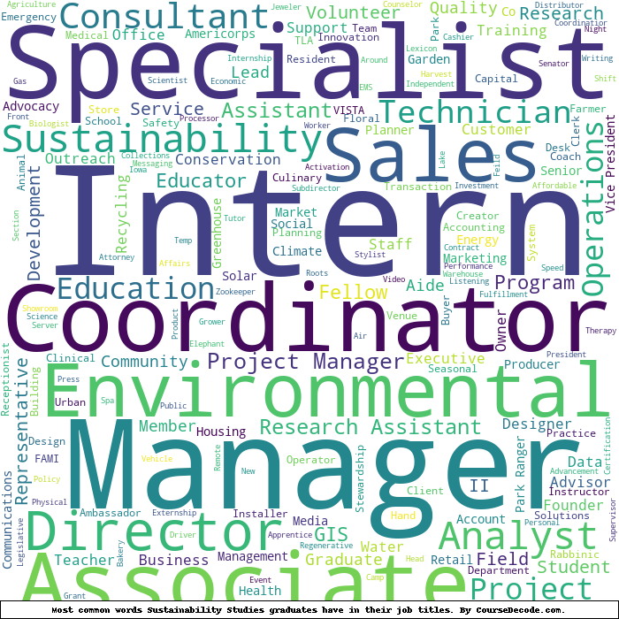 Here is a visual representation of the most common words in job titles for Sustainability Studies graduates: