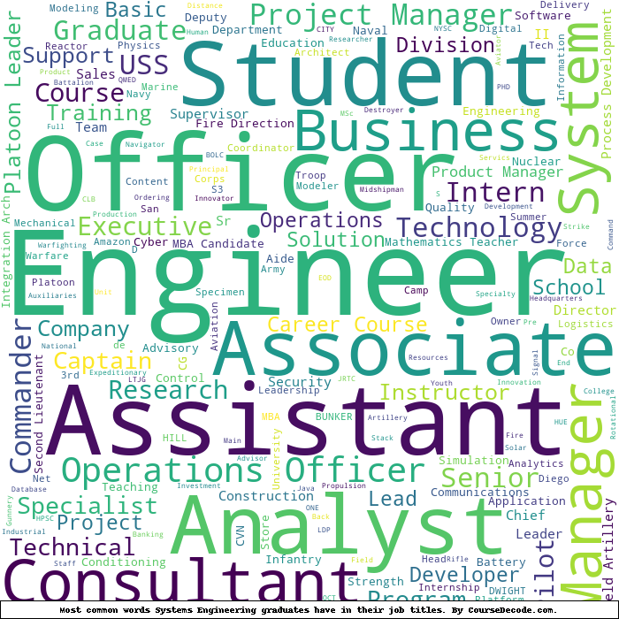 Here is a visual representation of the most common words in job titles for Systems Engineering graduates: