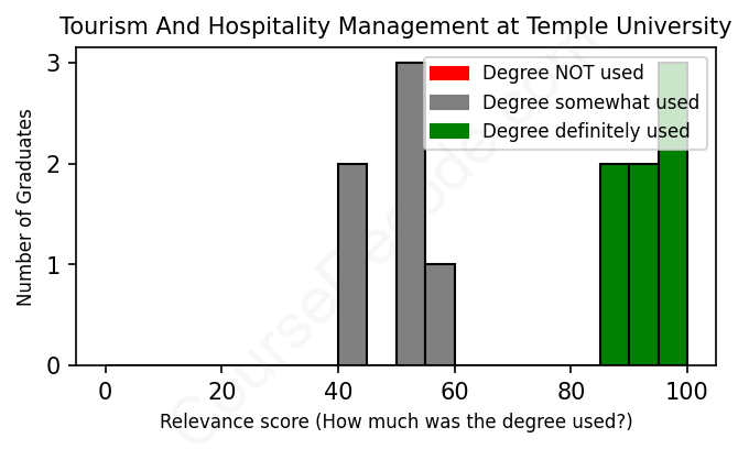 First, some facts. Of the Tourism And Hospitality Management graduates from Temple University we've analyzed , here's how many have used (or NOT used) their degree in their career: