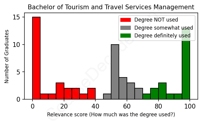 First, some facts. Of the Tourism and Travel Services Management graduates we've analyzed , here's how many have used (or NOT used) their degree in their career:
