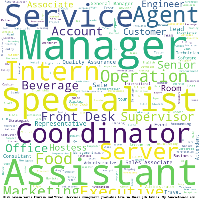 Here is a visual representation of the most common words in job titles for Tourism and Travel Services Management graduates: