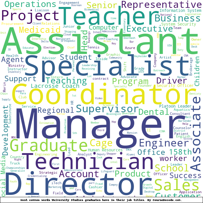 Here is a visual representation of the most common words in job titles for University Studies graduates: