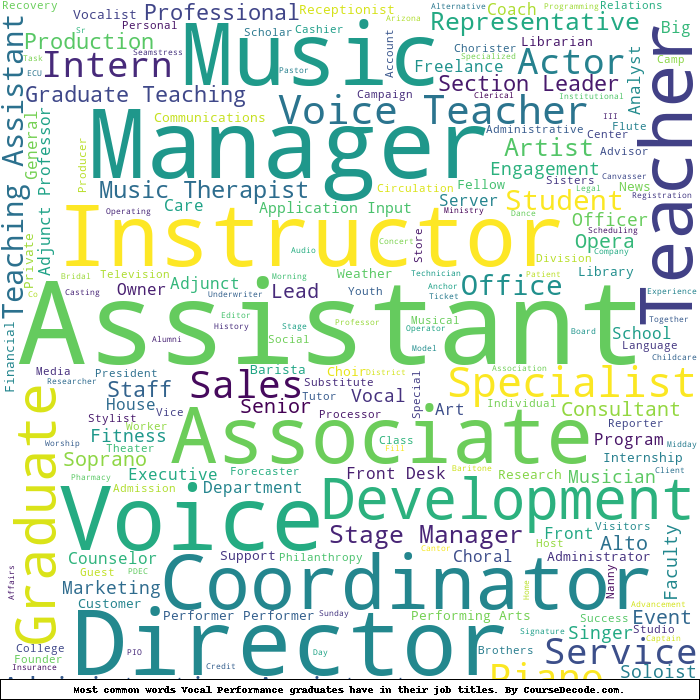 Here is a visual representation of the most common words in job titles for Vocal Performance graduates: