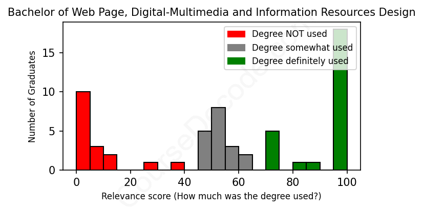 First, some facts. Of the Web Page, Digital-Multimedia and Information Resources Design graduates we've analyzed , here's how many have used (or NOT used) their degree in their career: