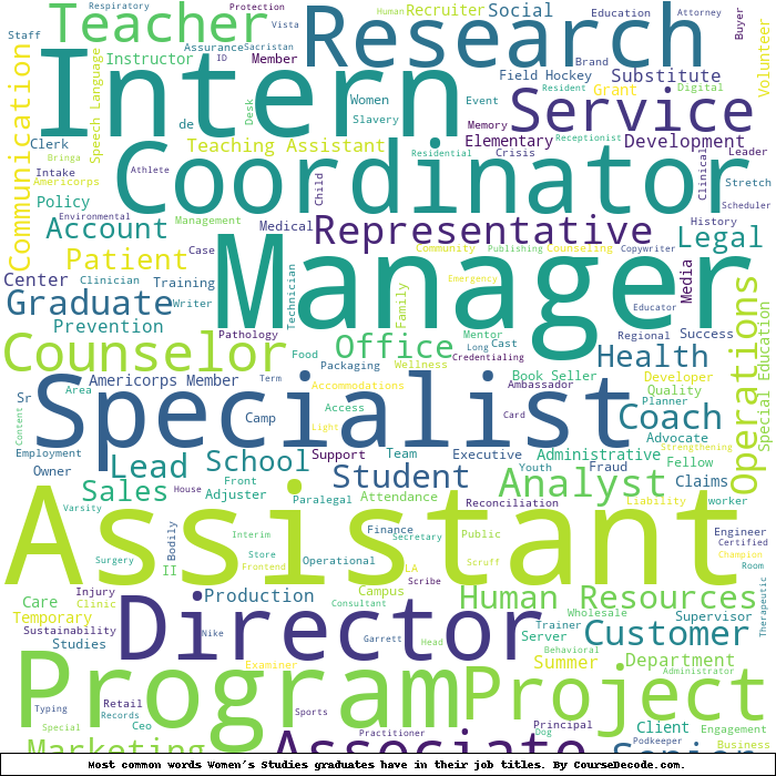Here is a visual representation of the most common words in job titles for Women's Studies graduates: