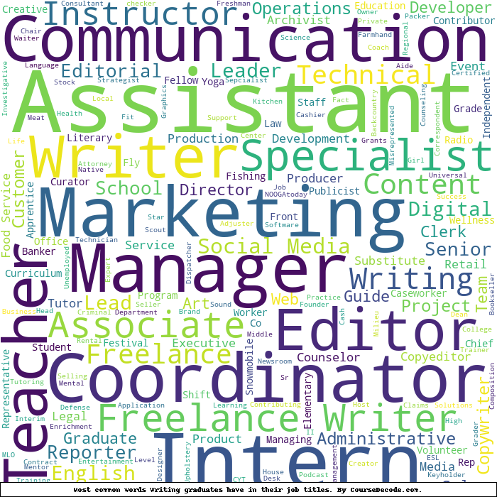 Here is a visual representation of the most common words in job titles for Writing graduates: